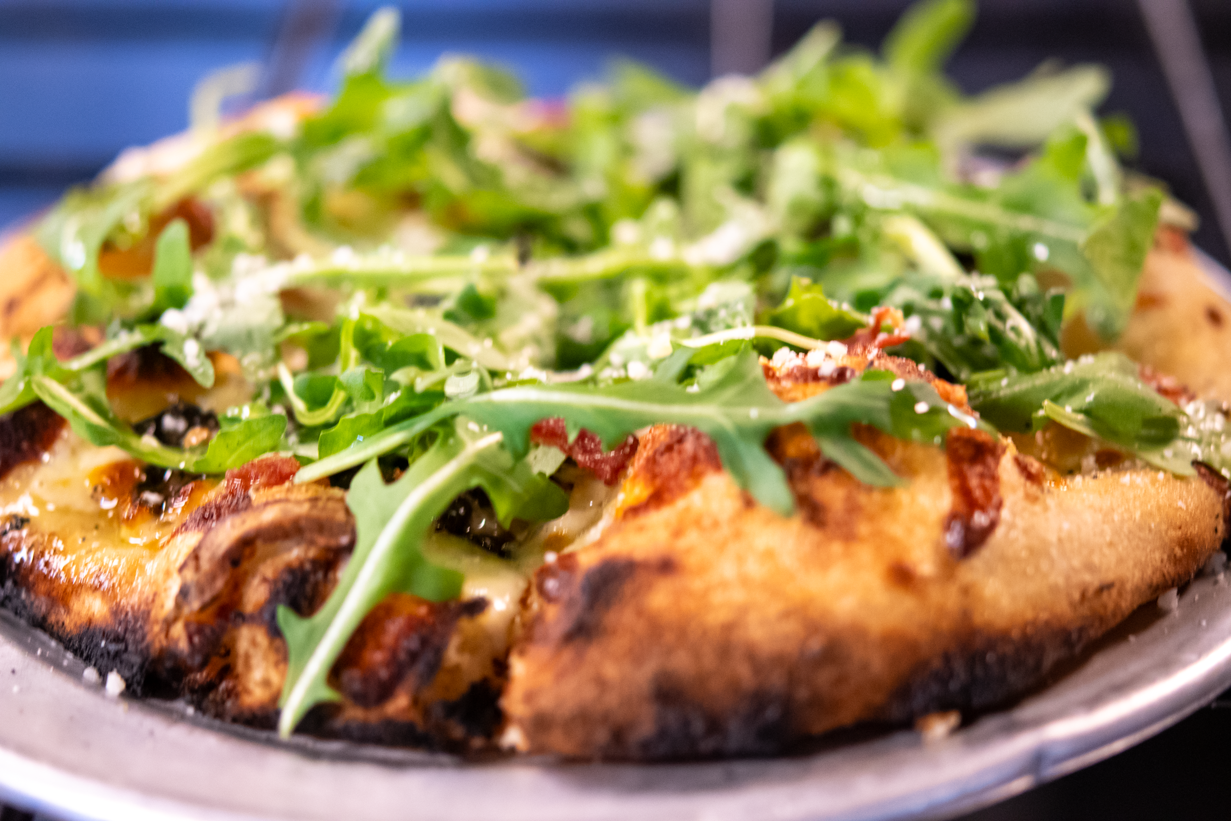 Roasted garlic & onion oil, mozzarella, provolone, roasted mushrooms, prosciutto, fresh arugula, truffle oil, grated Pecorino Romano